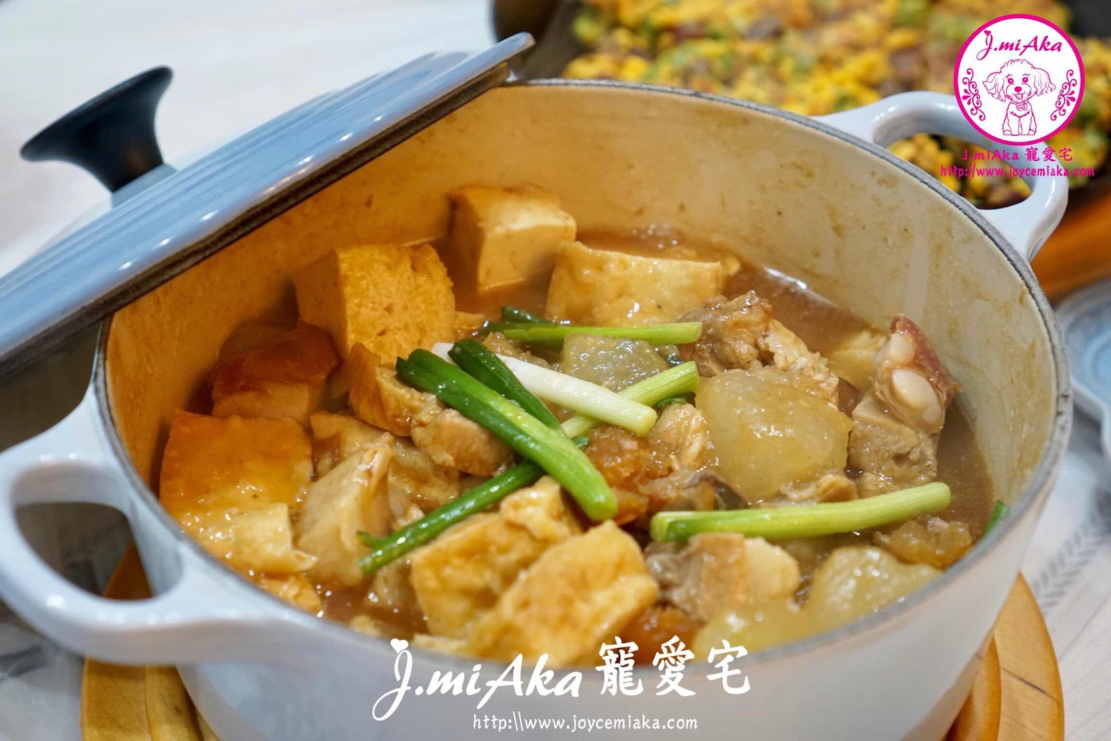 - 燒肉切件;冬瓜去皮去囊後切件;炸豆腐1切開8件,備用;