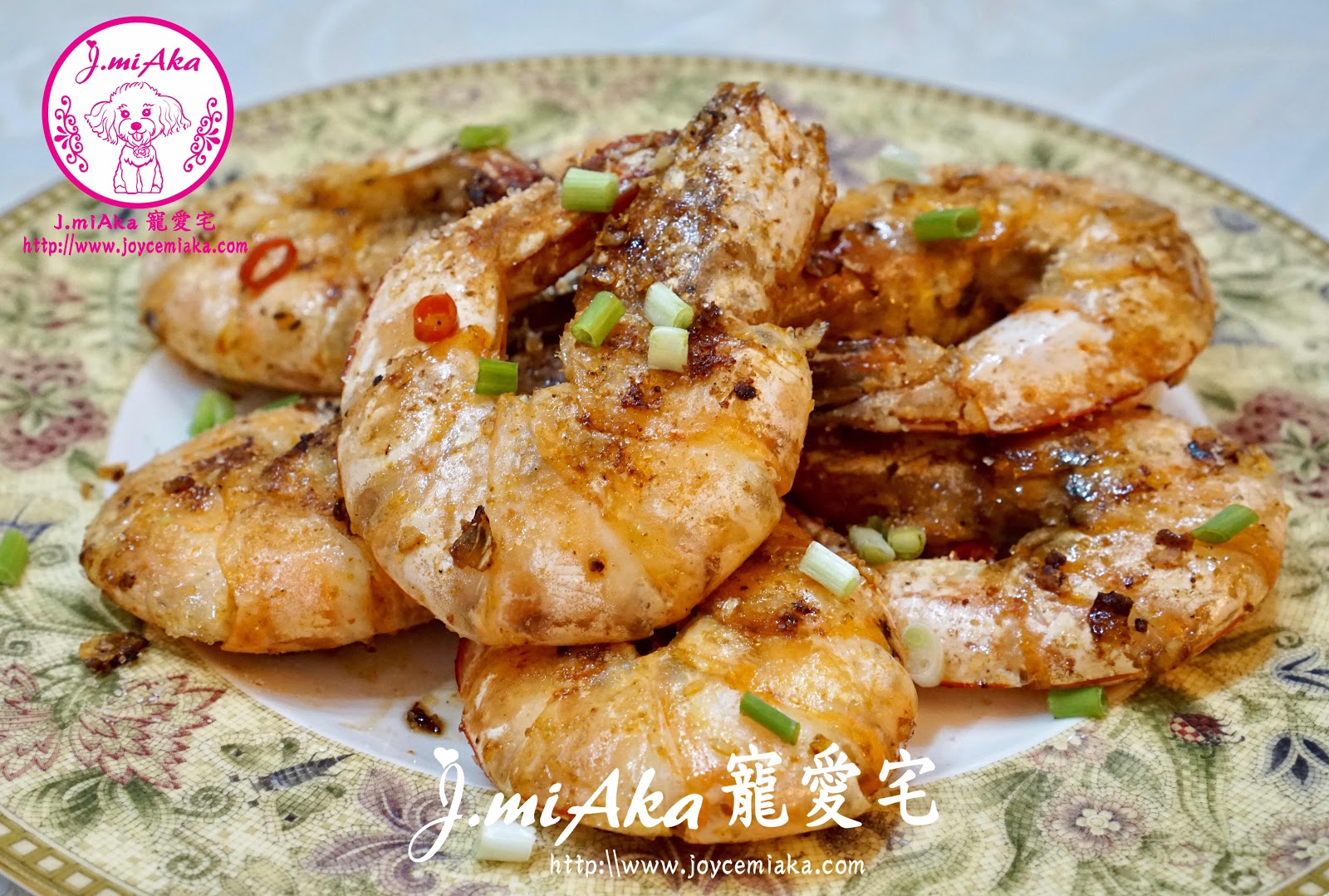 - 燒熱易潔鑊, 下2湯匙油, 先爆香乾蔥片,再把乾蔥撥至鑊邊或稍後放在蝦上,放蝦落鑊(蝦頭在鑊中心較易熟)以小火煎約3-5分鐘至變色;